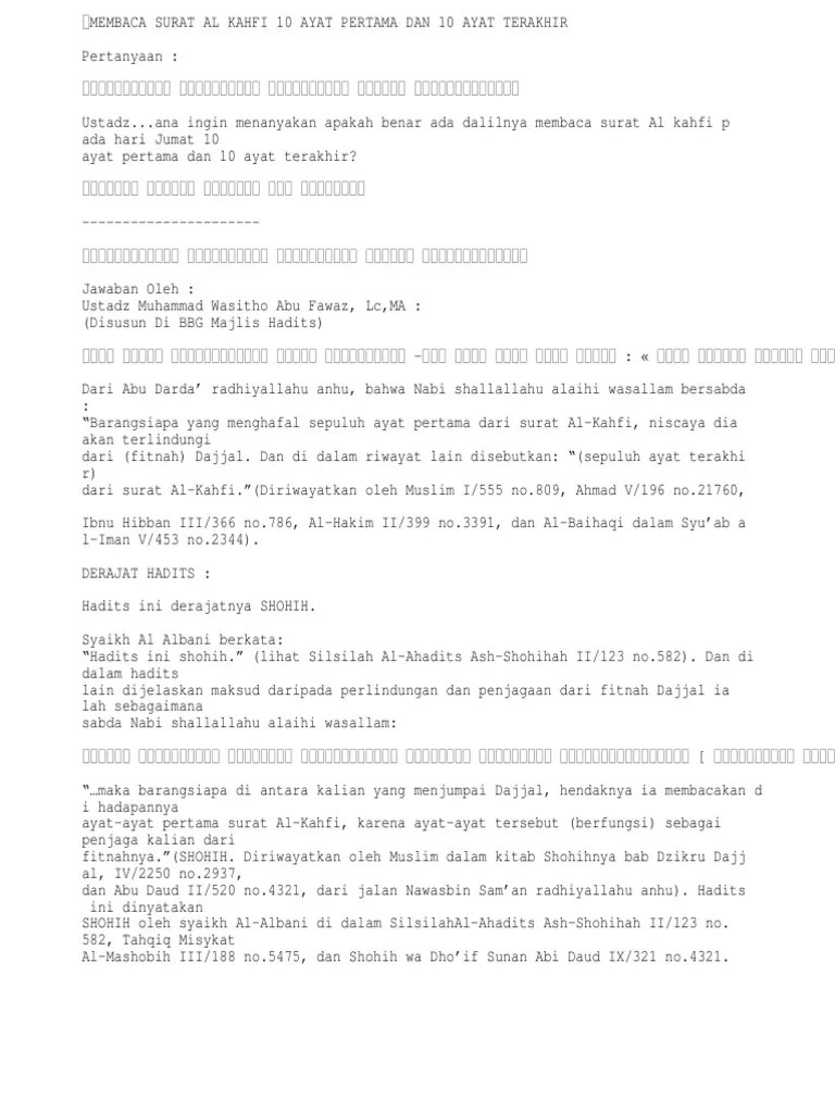 Pada hadis yang diriwayatkan dari imam ahmad dari abu darda r.a bahwa nabi saw berkata : Anyone fascinated with gangster history knows all about the escapades of al capone. 10 ayat akhir surah al kahfi · music in this video · learn more. Simak 10 ayat terakhir surah al kahfi arab, latin dan terjemahannya. Discover (and save!) your own pins on pinterest. Learn how to find al anon meetings near you. Membacanya akan terhindar dari fitnah dajjal · salah satu keistimewaan yaitu dengan membaca sepuluh ayat .