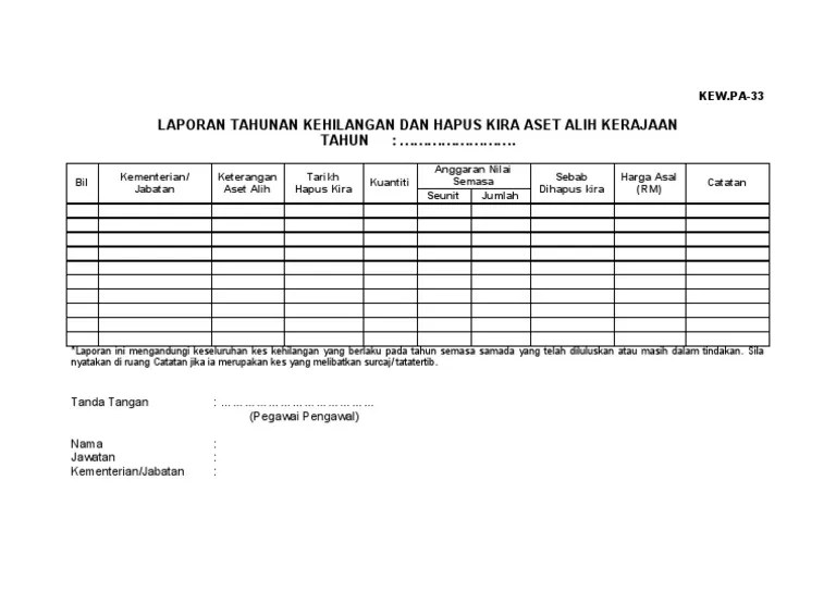 Pekeliling perbendaharaan malaysia am 2.8 lampiran a kew.